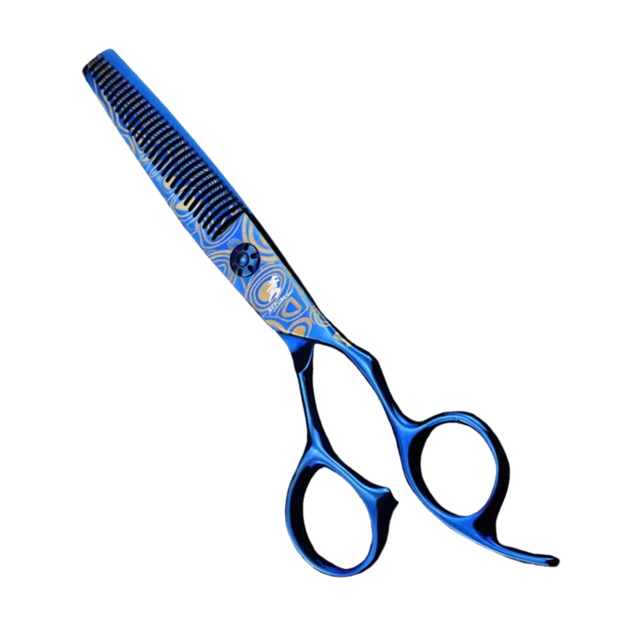 The Artistic Cobalt Swirl Thinning Shear is a masterpiece of both form and function. Wrapped in a stunning deep blue metallic finish with intricate gold-toned geometric swirls, this shear is designed for the stylist who views every haircut as a work of art. Beyond its striking appearance, it features a precision-milled thinning blade that provides smooth, snag-free texturizing for all hair types.