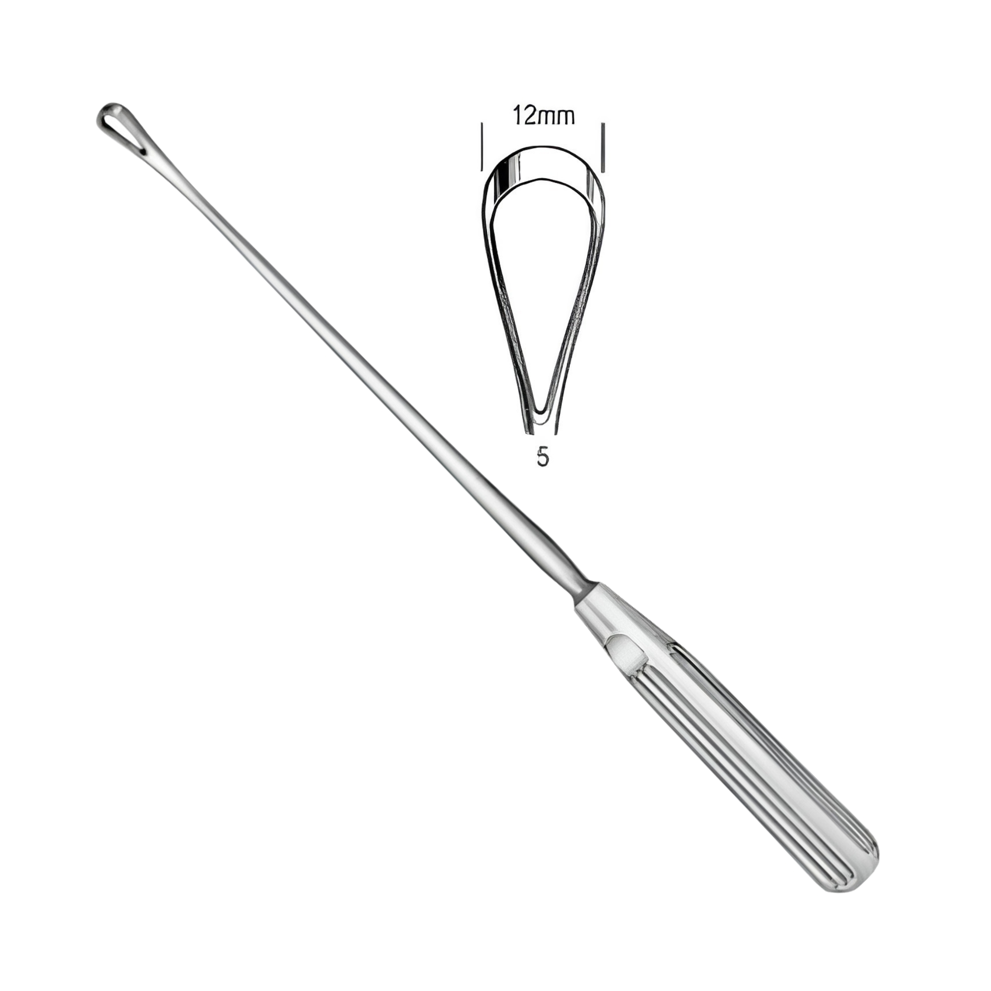 The Bumm Uterine Curette is a high-performance gynecological instrument designed for efficient scraping and tissue excision. This model features a medium-sized, 12mm sharp loop tip and a rigid, durable shaft, providing excellent control and precision during diagnostic or therapeutic uterine procedures.