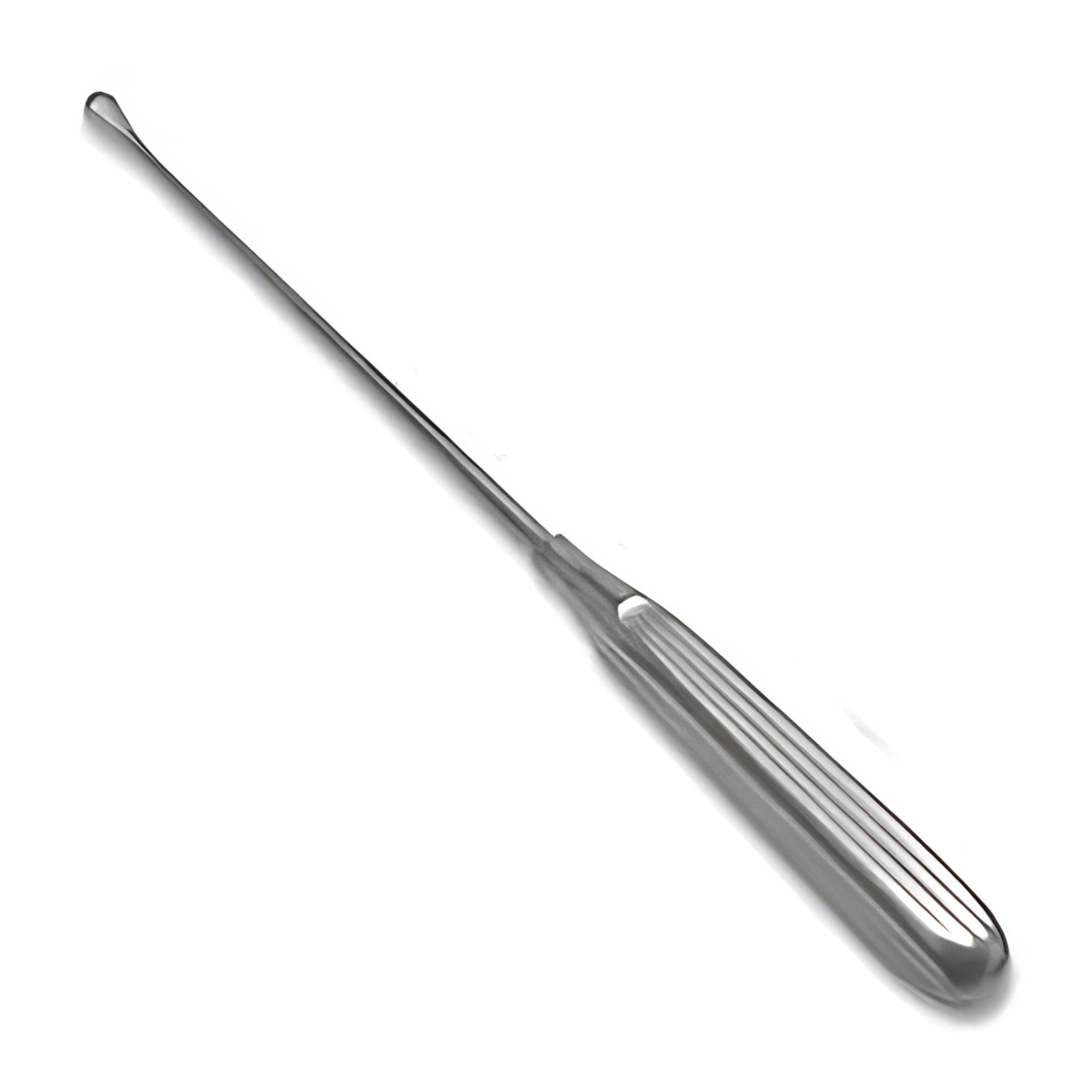 The Bumm Uterine Curette is a heavy-duty gynecological instrument engineered for efficient scraping and tissue removal. This specific model features a wide, 35mm sharp loop tip and a rigid shaft, providing the necessary strength and reach for post-partum procedures and the removal of large placental fragments.