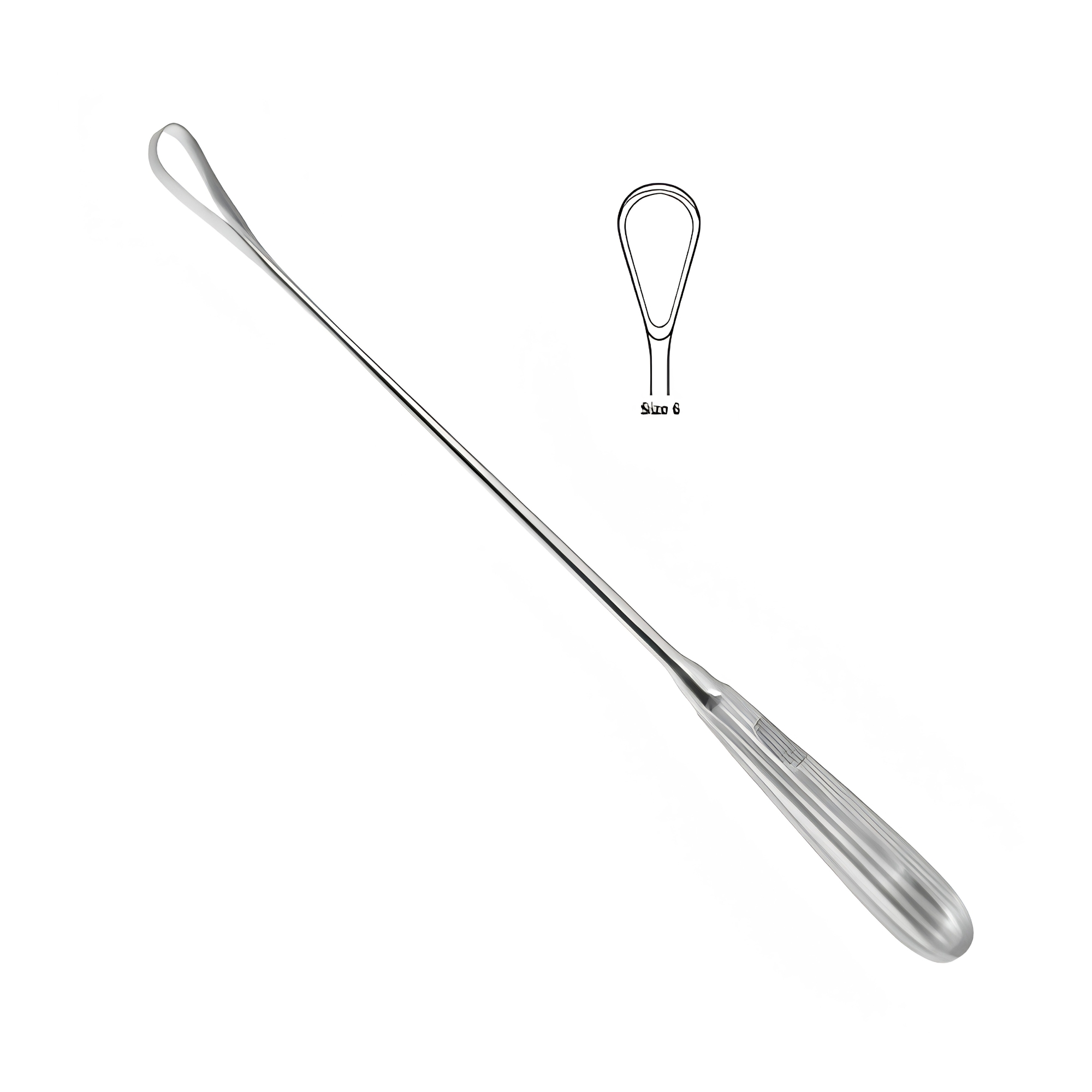 The Heaney Uterine Curette is a specialized gynecological instrument designed for the efficient removal of tough uterine tissue. Unlike standard smooth curettes, the Heaney model features a sharp, serrated loop tip that provides superior traction for scraping the endometrial lining or removing fibrous tissue.