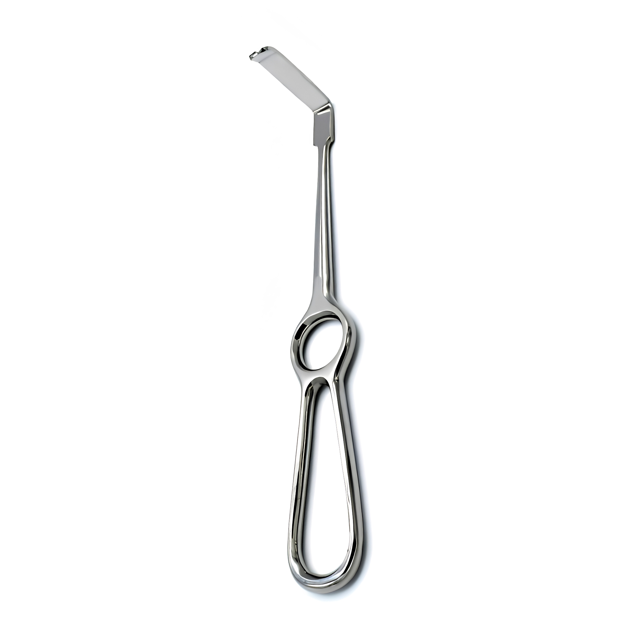 The Langenbeck Retractor is a versatile handheld instrument designed for safe and effective tissue retraction during minor and major surgeries. It features a narrow, L-shaped blade with a slight lip at the tip to ensure a secure hold on the tissue.
