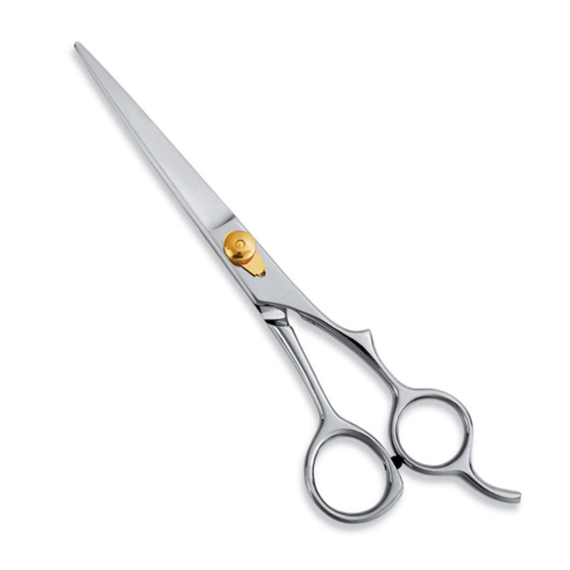 Discover the ultimate professional hair shears with a gold teardrop tension dial. High-polish stainless steel, ergonomic offset grip, and razor-sharp blades for elite styling.