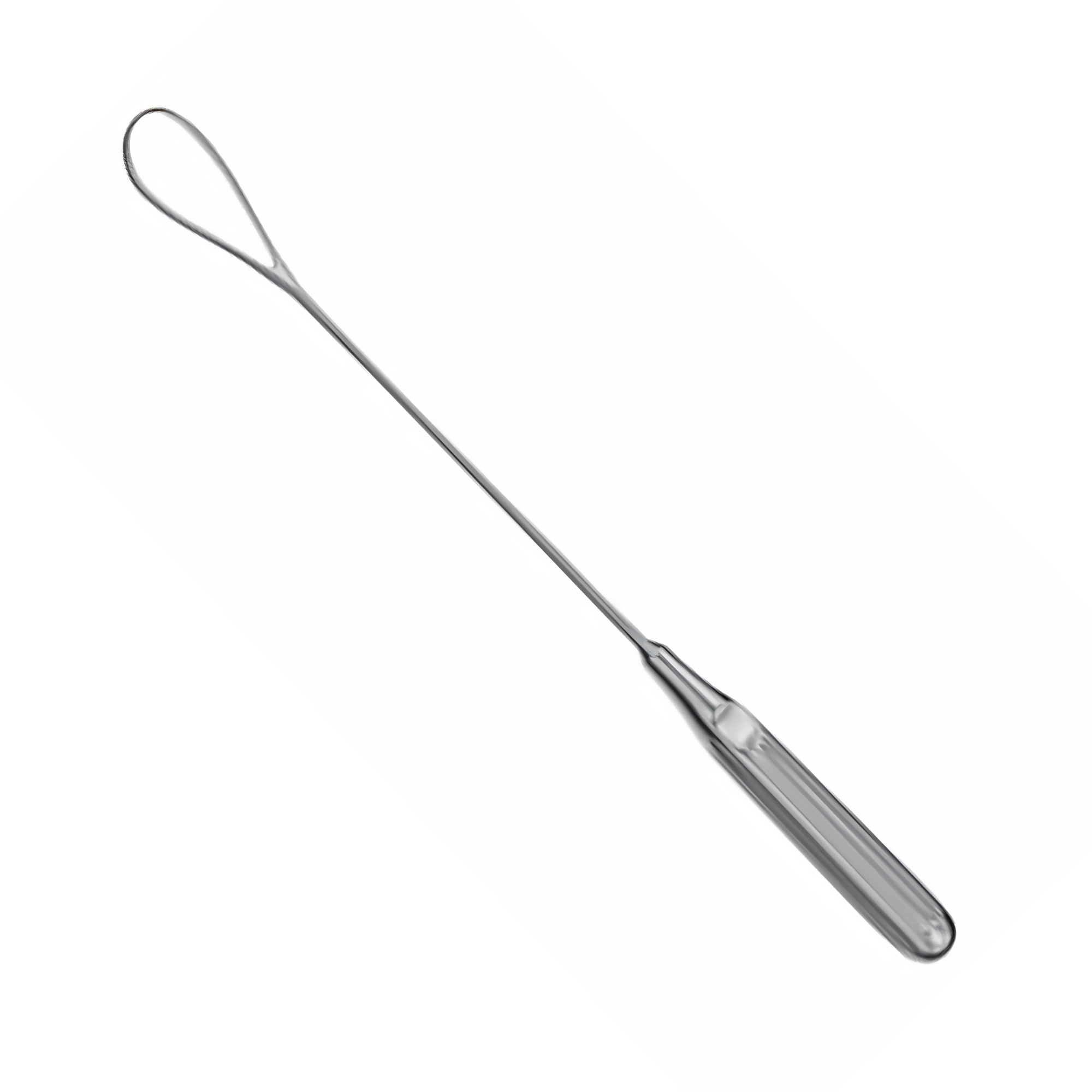 The Sims Uterine Curette is a standard gynecological instrument designed for excision and removal of tissue from the uterine wall. It features a rigid yet slender shaft leading to a sharp, teardrop-shaped loop, which provides the necessary precision for diagnostic sampling or therapeutic tissue removal.